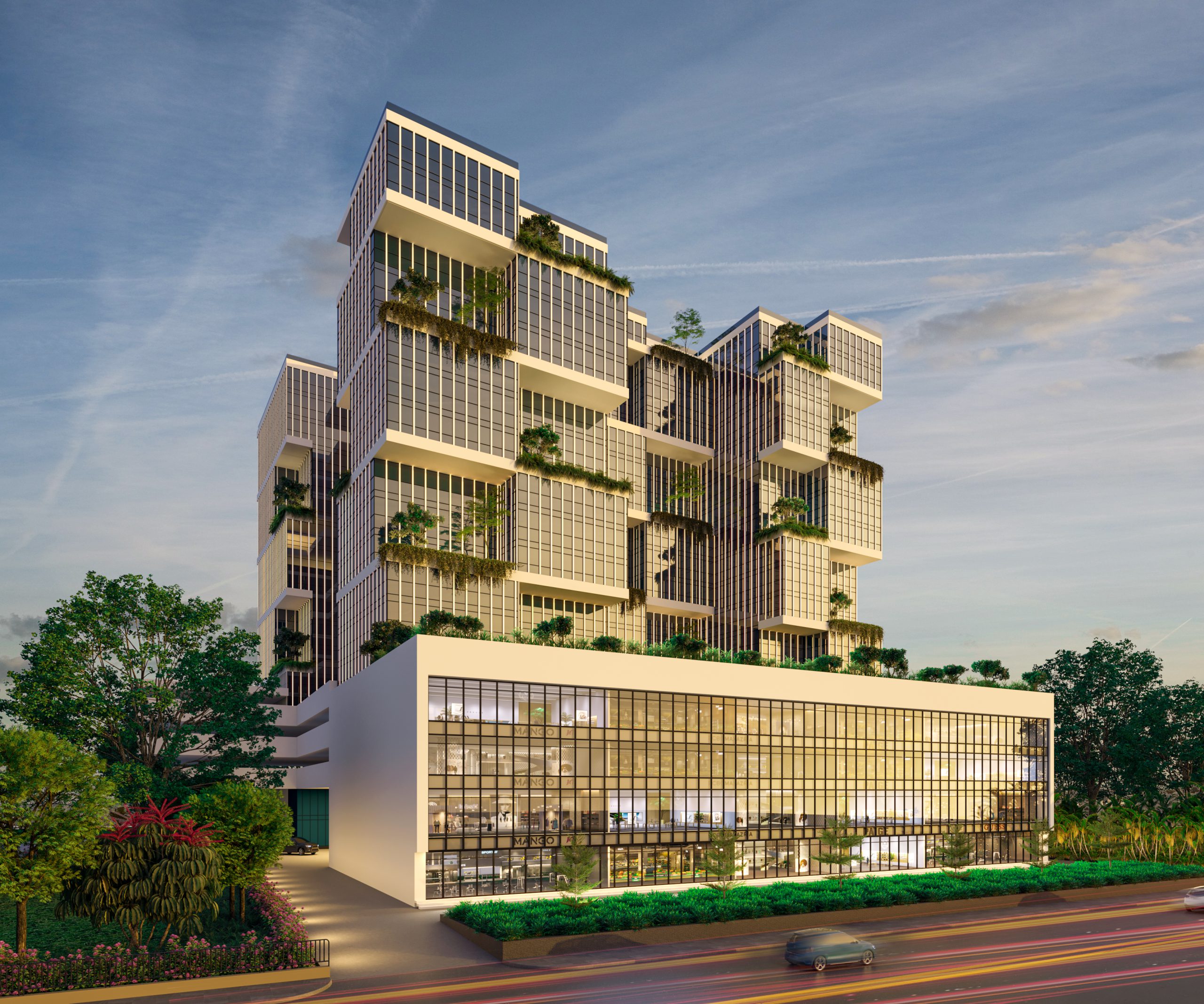 SUSTAINABLE AND GREEN BUIDLING DESIGN IN GUJARAT. LANDSCAPED TERRACES AND LOW E-VALUE GLASS FAÇADE. RETAIL, OFFICES, HOSPITALITY, THEATRES AND RESTAURANTS. ENERGY EFFICIENT DESIGNING AND PLANNING.