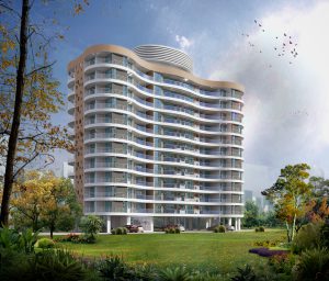 THIS ELEGANT RESIDENTIAL PROJECT SHOWCASES A MODERN ARCHITECTURAL LANGUAGE DEFINED BY ITS FLUID, WAVE-LIKE FAÇADE AND EXPANSIVE GLASS BALCONIES. THE DESIGN EMPHASIZES OPENNESS, NATURAL LIGHT, AND A SEAMLESS CONNECTION WITH THE SURROUNDING LANDSCAPE. WITH ITS CONTEMPORARY FORM AND REFINED DETAILING, IT STANDS AS A STATEMENT OF LUXURY URBAN LIVING.