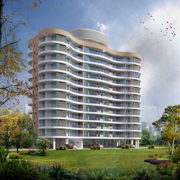 THIS ELEGANT RESIDENTIAL PROJECT SHOWCASES A MODERN ARCHITECTURAL LANGUAGE DEFINED BY ITS FLUID, WAVE-LIKE FAÇADE AND EXPANSIVE GLASS BALCONIES. THE DESIGN EMPHASIZES OPENNESS, NATURAL LIGHT, AND A SEAMLESS CONNECTION WITH THE SURROUNDING LANDSCAPE. WITH ITS CONTEMPORARY FORM AND REFINED DETAILING, IT STANDS AS A STATEMENT OF LUXURY URBAN LIVING.
